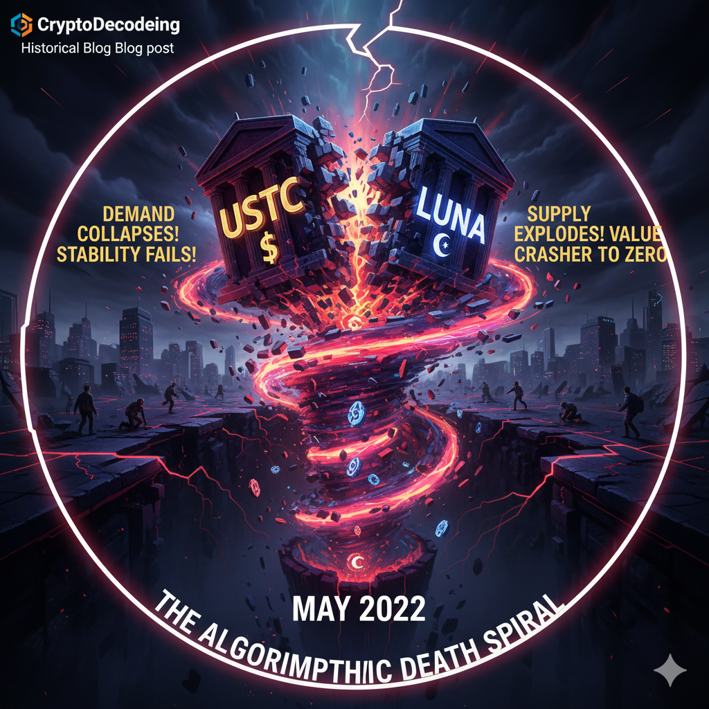 This event exposed the extreme fragility of purely algorithmic designs, proving that without substantial, diversified collateral, market sentiment alone can trigger a complete meltdown.